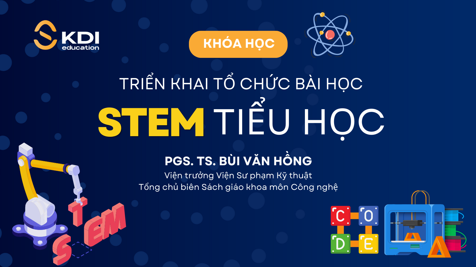 Căn cứ vào tình hình và chức năng nhiệm vụ, KDI Education đồng hành cùng PGS. TS. Bùi Văn Hồng (Viện trưởng, Viện Sư Phạm Kỹ Thuật – Trường Đại học Sư Phạm Kỹ Thuật TP.HCM, Tổng chủ biên sách giáo khoa môn Công Nghệ) tổ chức khóa đào tạo về triển khai tổ chức bài học STEM dành cho giáo viên đang giảng dạy tại các trường Tiểu học trên toàn quốc.